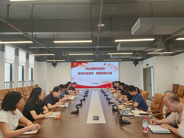 2025年7月3日下午,支部7月主题党日活动在对外联络办公室会议室召开。党日活动主题是“坚定红色信仰 凝聚发展力量”,活动由支部书记唐军同志主持。