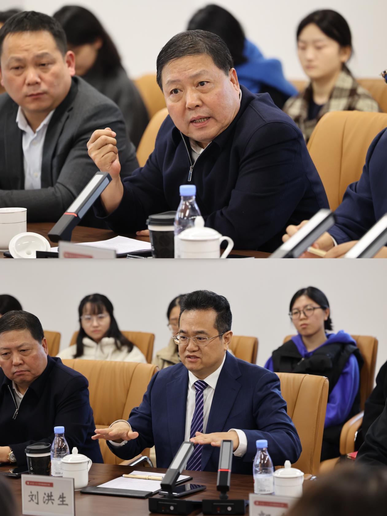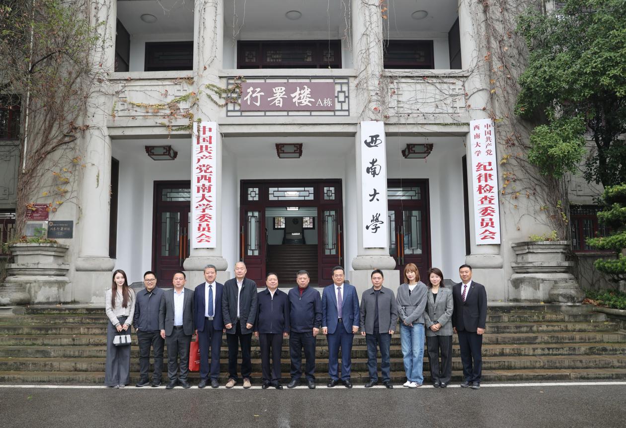 随后,刘洪生、董涛江一行前往西南大学行署楼,与学校党委书记张卫国举行亲切会谈。会谈中,张卫国书记对刘洪生、董涛江一行的到来表示热烈欢迎,并详细介绍了西南大学在人才培养、科学研究、文化传承创新等方面的发展成果,重点阐述了学校在农业科技、人文社科等领域的学科优势与特色。刘洪生在会谈中介绍了西宣传文化名家工作室的建设理念、发展定位及近年来在文化传播、人才培育等方面的实践成果,希望通过此次交流,探索文化与教育融合发展的新路径,共同打造文化传播精品项目。董涛江则结合山西盛世集团的产业布局,围绕校企合作、产学研融合等话题提出建议,表达了集团参与高校人才培养、推动科研成果转化的积极意愿。