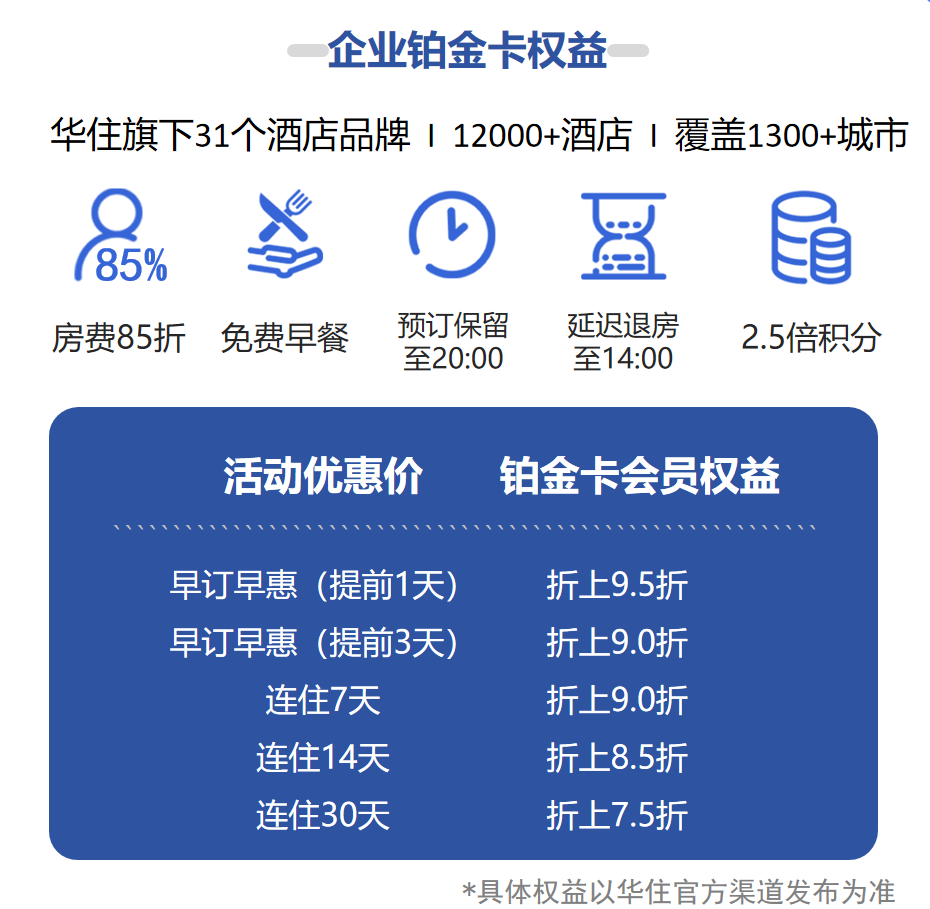 ✔ 本次活动领取的华住铂金会员长期有效,校友总会及华住酒店集团可针对铂金服务及权益进行临时性调整;