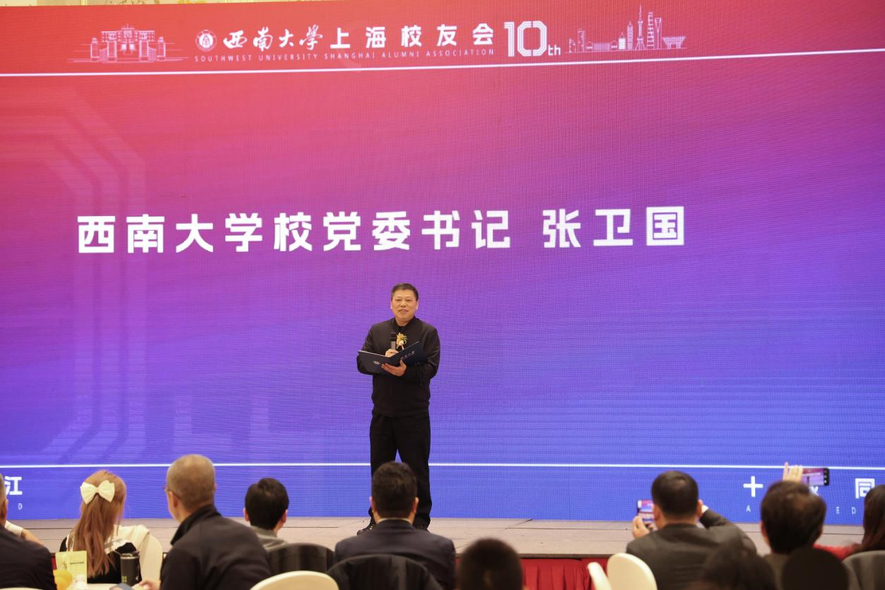 庆典仪式上,西南大学党委书记张卫国发表致辞。他首先代表学校向上海校友会成立十周年致以最热烈的祝贺,向莅临现场的各位嘉宾和奋斗在上海各条战线的全体西南大学校友致以最诚挚的问候。张卫国指出,上海作为改革开放的前沿阵地,汇聚了各类优质资源与发展机遇。西南大学上海校友会自成立以来,始终坚守联络校友、服务校友、助力母校发展的初心,搭建起了母校与在沪校友之间的坚实桥梁,为凝聚校友力量、促进校友成长、赋能地方发展作出了积极贡献。他希望上海校友会继续依托上海的区位优势,进一步汇聚校友智慧、拓展校友资源、凝聚校友合力,着力搭建更高层次、更宽领域的交流合作平台,推动校友与校友、校友与母校、校友与地方之间的深度联动发展。