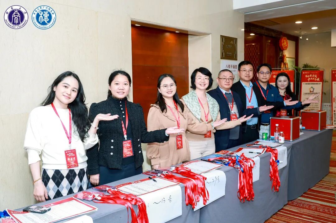 为保障年会顺利举办,会务组与节目组提前抵达酒店,有序推进会场布置与节目彩排工作。会场入口处特设校友企业展示长廊,互动打卡区成为现场亮点,校友们手持 “含弘光大,继往开来”“特立西南,学行天下”“相逢一笑,仍是少年” 等主题手举牌拍照留念,或写下对母校的真挚祝福,形成热烈的动态互动氛围。