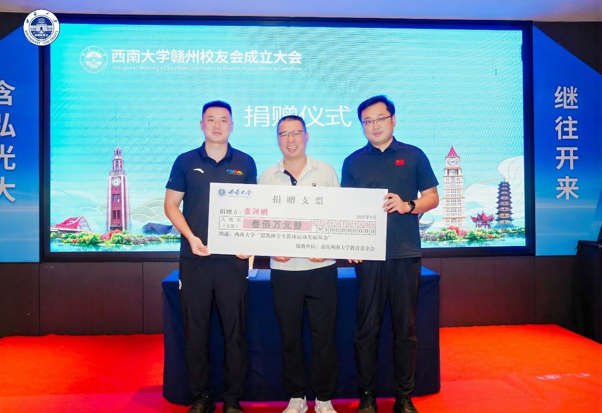 9月20日,西南大学党委常委、副校长葛信勇,对外联络办公室主任、校友总会秘书长唐军,校体委办公室主任鲁冠,西南大学男子篮球队主教练王智等一行前往赣州接受捐赠。