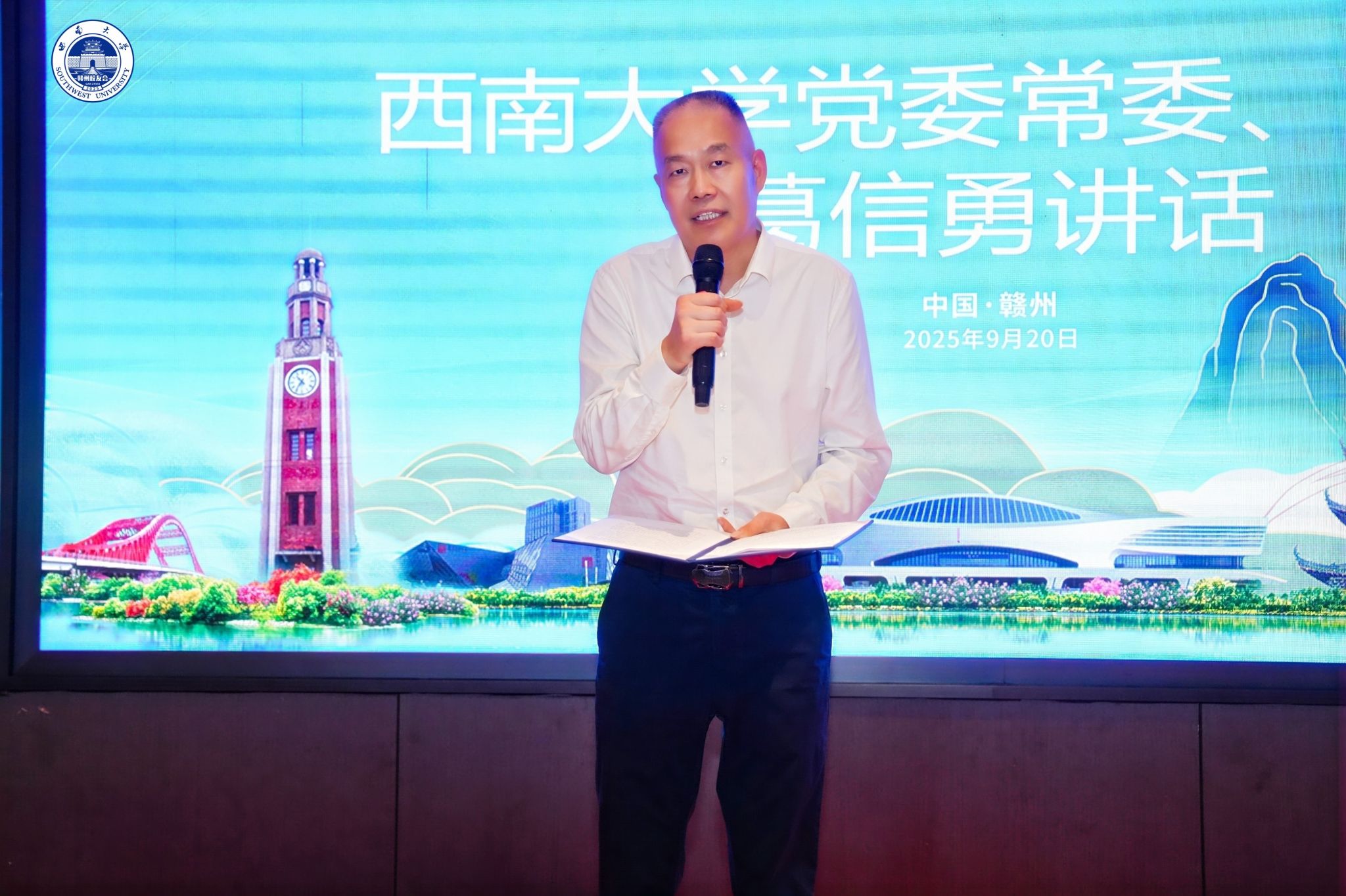 9月20日,西南大学赣州校友会成立大会在江西省赣州市隆重召开。西南大学党委常委、副校长葛信勇,对外联络办公室主任、校友总会秘书长唐军,校体委办公室主任鲁冠等一行赴赣州参加校友会成立大会。