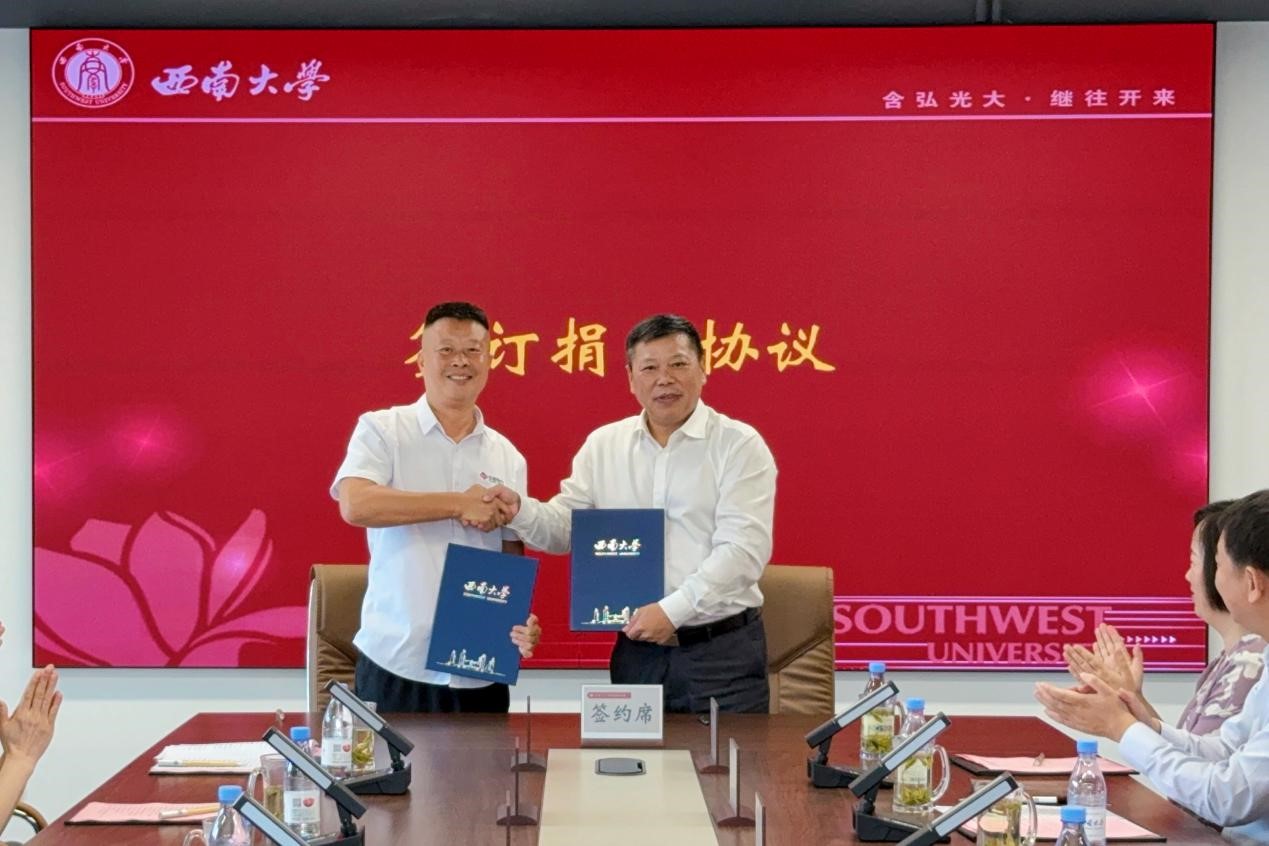 96级经济管理学院优秀校友徐建捐资300万元,设立西南大学“华美励志奖学金”。仪式上,双方共同签署捐赠协议、完成捐赠支票交接,张卫国为徐建颁发捐赠荣誉证书及奖学金设立纪念牌。