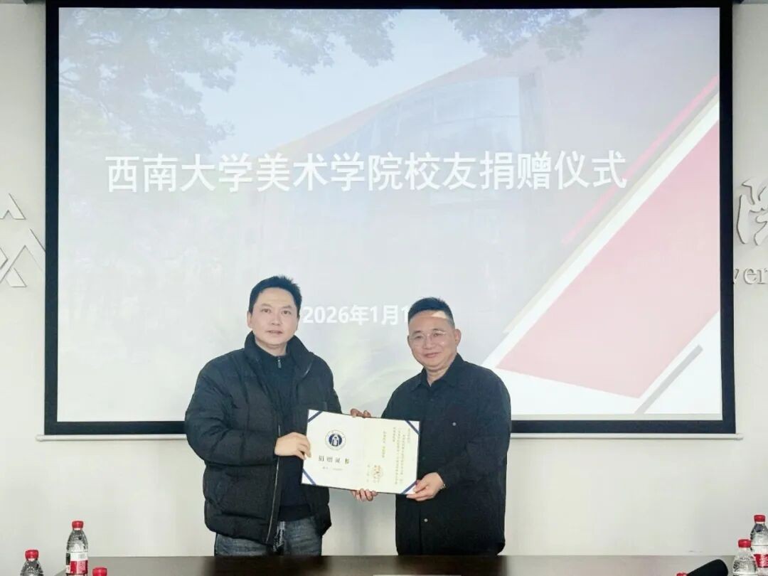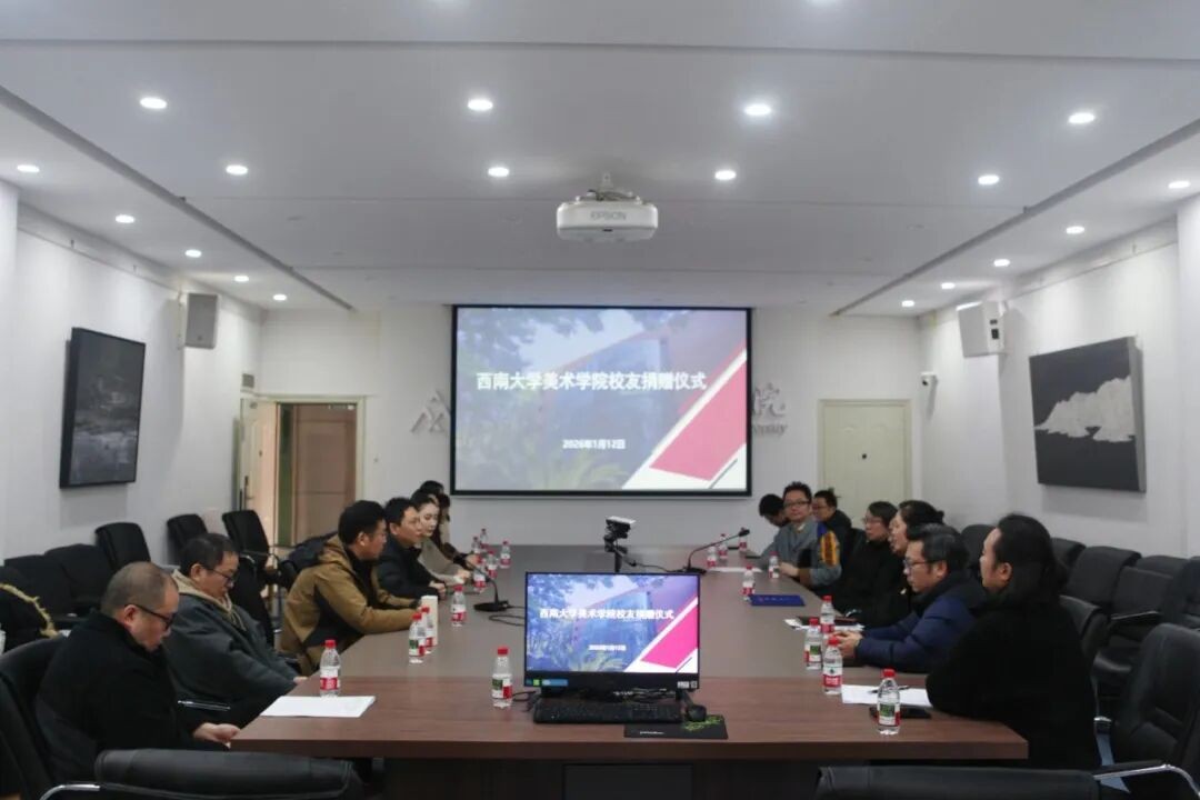 2026年1月12日上午,美术学院校友捐赠仪式于学院214会议室举行。美术学院2005级校友、佛山顺德企业家张金良,校对外联络办公室主任兼校友总会秘书长、教育基金会秘书长唐军,学院党政班子、教师代表及对外联络办公室相关工作人员出席仪式。仪式由副院长谢光跃主持。