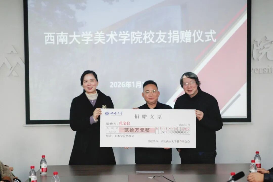 校友张金良在发言中回顾了在母校的学习经历,感谢学院的培养与师长的教诲,并表示愿以此次捐赠为起点,持续助力学院事业进步。青年教师代表石富对捐赠表示感谢。学院党委书记张瑜强调,2026年是美术学科百年与学校双甲子校庆交汇的重要时刻,校友的捐赠意义深远,必将激励更多校友关注并支持学院发展,更将为广大教师潜心教书育人、深耕学术创作提供坚实保障,助力学院人才培养与学科建设再攀新高。